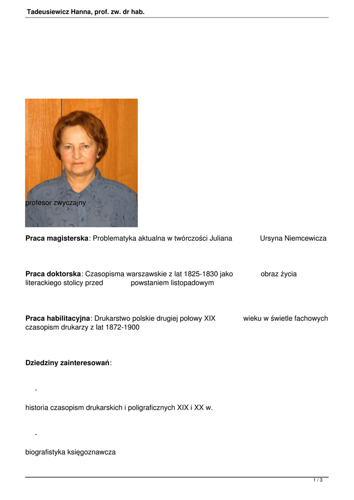 Tadeusiewicz Hanna, prof. zw. dr hab.