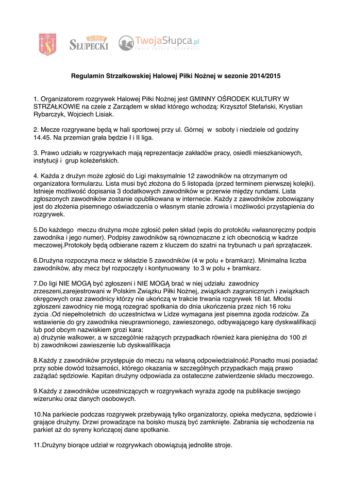 Regulamin Strzałkowskiej Halowej Piłki Nożnej w sezonie 2014/2015