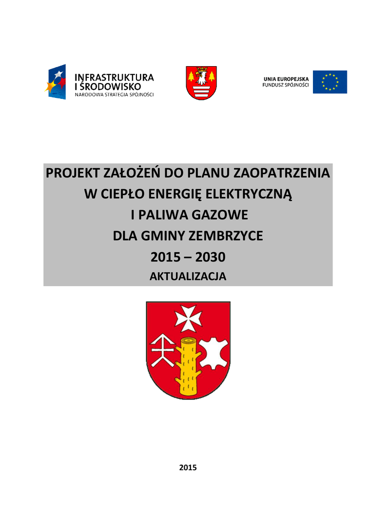 PROJEKT ZAŁOŻEŃ DO PLANU ZAOPATRZENIA W CIEPŁO ENERGIĘ ELEKTRYCZNĄ I PALIWA GAZOWE DLA GMINY ZEMBRZYCE 2015 – 2030 AKTUALIZACJA 2015 Projekt założeń do planu zaopatrzenia w ciepło, energię elektryczną i paliwa gazowe dla Gminy Zembrzyce Opracowany na zlecenie powiatu suskiego Wykonawca: ECOVIDI Piotr Stańczuk Al. Jana Pawła II 150/11 31—982 Kraków www.ecovidi.pl Dokument przygotowany w ramach realizacji projektu pn.: Plany gospodarki niskoemisyjnej dla 8 gmin w obrębie obszarów NATURA 2000 Powiatu Suskiego Projekt współfinansowany przez Unię Europejską ze środków Funduszu Spójności w ramach Programu Infrastruktura i Środowisko www.pois.gov.pl Dla rozwoju infrastruktury i środowiska 2 Projekt założeń do planu zaopatrzenia w ciepło, energię elektryczną i paliwa gazowe dla Gminy Zembrzyce SPIS TREŚCI 1 Podstawy prawne ________________________________________________________ 7 1.1. Uwzględnienie założeń regionalnych dokumentów strategicznych ___________________ 13 1.1.1 1.1.2 Uwzględnienie założeń dokumentów strategicznych szczebla wojewódzkiego _____ 13 Uwzględnienie założeń dokumentów strategicznych szczebla lokalnego __________ 17 2 Metodyka______________________________________________________________ 22 3 Charakterystyka gminy Zembrzyce__________________________________________ 23 3.1. Ogólne informacje _________________________________________________________ 23 3.2. Surowce mineralne _________________________________________________________ 24 3.3. Rzeźba terenu _____________________________________________________________ 24 3.4. Wody powierzchniowe i podziemne ___________________________________________ 24 3.5. Ochrona przyrody __________________________________________________________ 25 3.6. Klimat ___________________________________________________________________ 25 3.7. Ludność __________________________________________________________________ 26 3.8. Gospodarka _______________________________________________________________ 28 3.9. Rolnictwo ________________________________________________________________ 29 3.10. Infrastruktura techniczna __________________________________________________ 30 3.10.1 3.10.2 3.10.3 4 Zaopatrzenie w ciepło, energię elektryczną i paliwa gazowe __________________________ 32 4.1. Zaopatrzenie w ciepło ______________________________________________________ 32 4.2. Zaopatrzenie w energię elektryczną ___________________________________________ 35 4.2.1 4.2.2 4.2.3 4.3. Stan istniejący ___________________________________________________________________ 35 Zużycie energii elektrycznej ________________________________________________________ 36 Kierunki rozwoju _________________________________________________________________ 36 Zaopatrzenie w gaz _________________________________________________________ 37 4.3.1 4.3.2 5 Gospodarka wodno–kanalizacyjna _________________________________________________ 30 Oświetlenie uliczne _____________________________________________________________ 31 Infrastruktura transportowa _____________________________________________________ 31 Stan istniejący ___________________________________________________________________ 37 Zużycie gazu _____________________________________________________________________ 37 Analiza możliwości wykorzystania odnawialnych źródeł energii __________________ 38 5.1.1 5.1.2 5.1.3 5.1.4 5.1.5 5.1.5.1 5.1.5.2 5.1.6 Strategia rozwoju energetyki odnawialnej w Polsce _____________________________________ Energia wodna ___________________________________________________________________ Energia wiatru ___________________________________________________________________ Energia słoneczna ________________________________________________________________ Energia geotermalna ______________________________________________________________ Pompy ciepła __________________________________________________________________ Przykłady zastosowań pomp ciepła ________________________________________________ Energia biomasy _________________________________________________________________ 38 40 42 45 49 50 53 56 6 Możliwość wykorzystania istniejących nadwyżek i lokalnych zasobów paliw kopalnych i energii; energii elektrycznej wytworzonej w skojarzeniu z ciepłem; ciepła odpadowego z instalacji przemysłowych. ____________________________________________________ 70 3 Projekt założeń do planu zaopatrzenia w ciepło, energię elektryczną i paliwa gazowe dla Gminy Zembrzyce 6.1. Możliwość wykorzystania istniejących nadwyżek lokalnych zasobów paliw kopalnych i energii 70 7 6.2. Energia elektryczna w skojarzeniu z wytwarzaniem ciepła _________________________ 70 6.3. Ciepło odpadowe z instalacji przemysłowych ____________________________________ 74 Bilans energetyczny – rok bazowy 2014 ______________________________________ 75 7.1. Sektory bilansowe w gminie _________________________________________________ 75 7.2. Założenia ogólne (sektory 1-3) ________________________________________________ 75 7.2.1 7.2.2 7.3. Definicje ________________________________________________________________________ 75 Kryteria przeprowadzania wskaźnikowych obliczeń zapotrzebowania na energię _____________ 77 Sektor budownictwa mieszkaniowego _________________________________________ 78 7.3.1 7.3.2 7.4. Bilans energetyczny metodą wskaźnikową ____________________________________________ 78 Bilans energetyczny na podstawie ankiet _____________________________________________ 80 Sektor budownictwa użyteczności publicznej ____________________________________ 81 7.4.1 7.4.2 7.5. Bilans energetyczny metoda wskaźnikową ____________________________________________ 81 Bilans energetyczny na podstawie ankiet _____________________________________________ 82 Sektor działalności gospodarczej ______________________________________________ 82 7.5.1 7.6. Bilans energetyczny metodą wskaźnikową ____________________________________________ 82 Zużyc