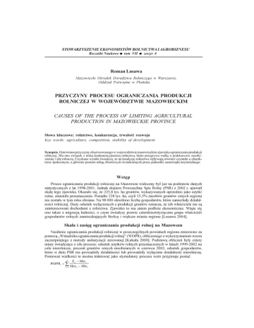 Synopsis. Omówiono przyczyny obserwowanego w województwie mazowieckim zjawiska ograniczenia produkcji