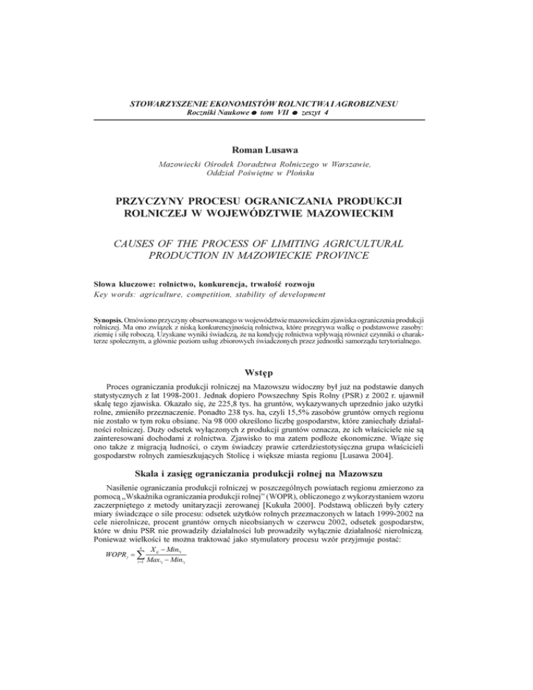 Skala i zasiêg ograniczania produkcji rolnej na Mazowszu