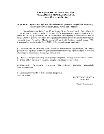 ZARZĄDZENIE Nr 0050.1.0003.2016 PREZYDENTA MIASTA