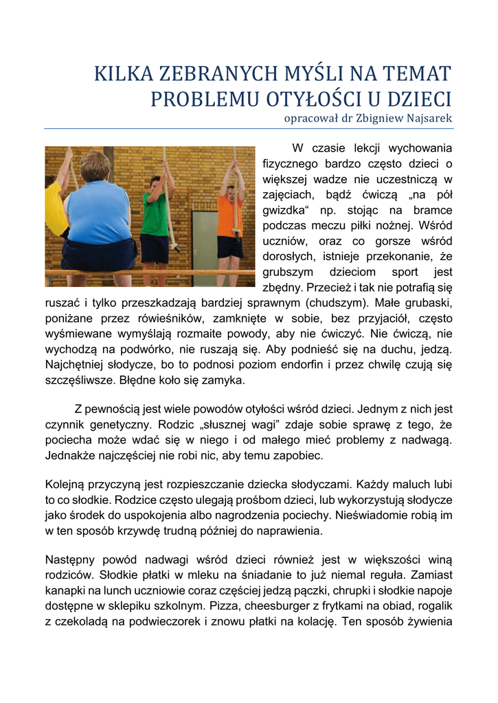 kilka zebranych myś li na temat problemu otyłoś ci u dzieci