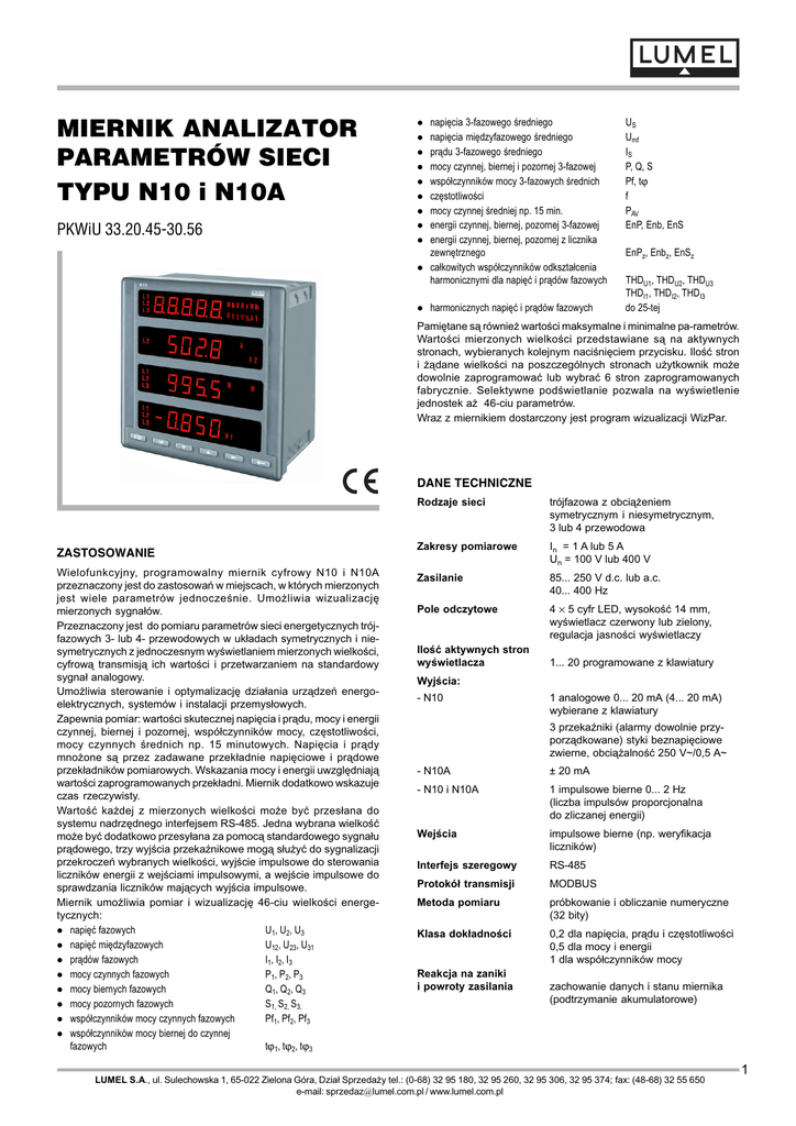 MIERNIK ANALIZATOR PARAMETRÓW SIECI TYPU N10 i