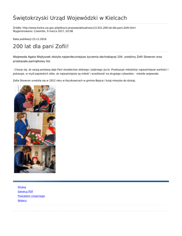 Świętokrzyski Urząd Wojewódzki w Kielcach 200 lat dla pani Zofii!