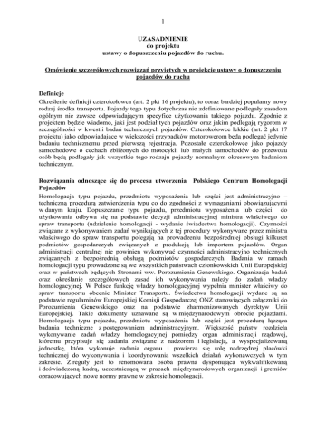 1 UZASADNIENIE do projektu ustawy o dopuszczeniu pojazdów do