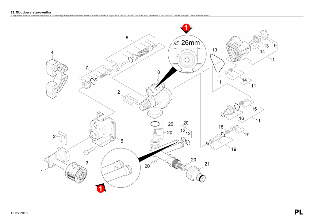 21 Obudowa sterownika Przegląd dokumentacji technicznej/Home & Garden/Myjka wysokociśnieniowa woda zimna/Silnik elektryczny/K 4/K 4 *EU (1.180-150.0)/Lista części zamiennych K4 Classic/20 Zestaw pomp/21 Obudowa sterownika 15.05.2015 PL 21 Obudowa sterownika Przegląd dokumentacji technicznej/Home & Garden/Myjka wysokociśnieniowa woda zimna/Silnik elektryczny/K 4/K 4 *EU (1.180-150.0)/Lista części zamiennych K4 Classic/20 Zestaw pomp/21 Obudowa sterownika Części zamienne/zużywalne Poz.. Nr materiału Nazwa Ilość ME X-X 1 9.001-749.0 Króciec wysokociśnieniowy kpl. 1.000 ST 2 9.039-148.0 Klamra 2.000 ST 3 9.086-200.0 Śruba M 8x55 Class 8.8 4.000 ST 4 9.037-673.0 Uchwyt pompa (bridge) 1.000 ST 5 9.039-308.0 Pokrywa K130 1.000 ST 7 9.001-741.0 Zestaw części - zasysanie chemii 1.000 ST X 8 9.002-010.0 Zestaw do przebudowy obudowa sterownika 1.000 ST X 9 9.038-428.0 Pierscien oporowy 6,7 mm 3.000 ST Tekst pozycji: 1.180-151.0/-154.0/100.0/-130.0/-150.0/-153.0/-156.0/-163.0 10 9.081-422.0 Uszczelka kształtowa 1.000 ST X-X 11 9.001-693.0 Zestaw części zamiennych głowica cylindr 1.000 ST X 12 9.080-455.0 Uszczelnienie 10x2,8 2.000 ST 13 6.362-875.0 Pierścień uszczelniający 3.000 ST 14 9.001-110.0 Kształtka kpl. 1.000 ST 15 9.001-149.0 Zestaw części zamiennych zawór 1.000 ST 16 9.001-106.0 Element łączący 1.000 ST 17 9.001-107.0 Klatka kpl. 1.000 ST 18 9.047-026.0 Sprężyna 1.000 ST 19 9.001-108.0 Inżektor kompletny 1.000 ST 20 9.001-782.0 Zestaw części króciec ssawny 1.000 ST 21 6.465-031.0 Przyłącz 3/4" 1.000 ST X-X Strona 2 Powered by TCPDF (www.tcpdf.org)