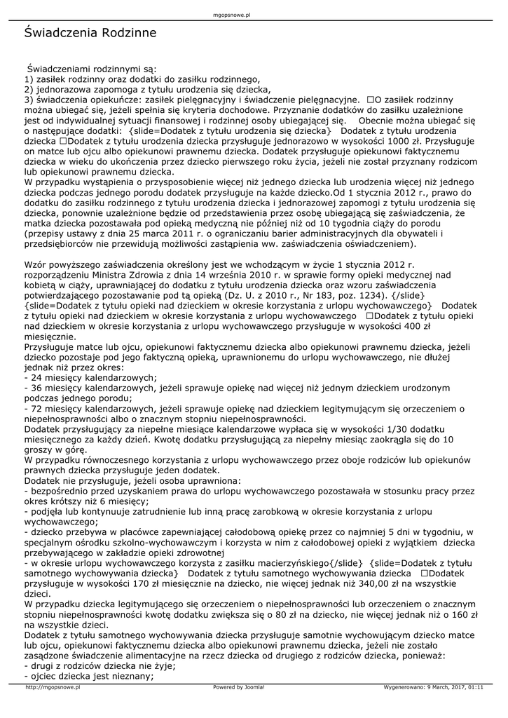 potwierdzającego pozostawanie pod tą opieką (Dz. U. z 2010 r., Nr 183, poz. 1234). {/slide}