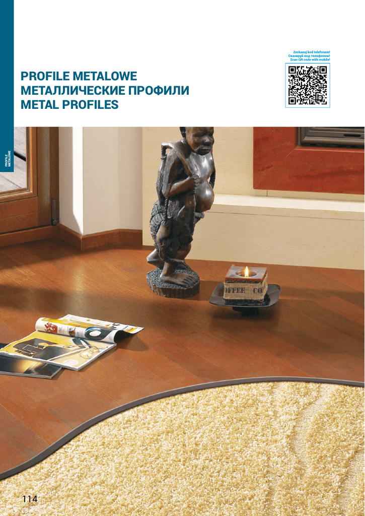 PROFILE METALOWE PROFILE METALOWE МЕТАЛЛИЧЕСКИЕ ПРОФИЛИ METAL PROFILES 114 KOLORYSTYKA PROFILI ALUMINIOWYCH I MOSIĘŻNYCH ЦВЕТОВАЯ ГАММА АЛЮМИНИЕВЫХ И ЛАТУННЫХ ПРОФИЛЕЙ RANGE OF COLOURS – ALUMINIUM AND BRASS PROFILES Kolorystyka profili anodowanych / Цветовая гамма анодированных профилей / Range of colours - anodised profiles C-23 C-32 C-33 C-34 EC-0 Złoty Золотой Gold Szampan Шампань Champagne Oliwka Oливковый Olive Ciemny brąz Темно-коричневый Dark brown Srebrny połysk Cеребряный блеск Silver shine PROFILE METALOWE C-0 Srebrny Cеребряный Silver EC-23 ST C-1 Złoty połysk Золотой блеск Gold shine Stal nierdzewna Нержавеющая сталь Stainless steel Anoda st. szlach. szczotkowana Нержавеющая брашированная сталь Brushed stainless steel anode Kolorystyka profili mosiężnych / Цветовая гамма латунных профилей / Colours of brass profiles N P CH Naturalny Естественный Natural Polerowany Полированный Polished Chromowany Хромированный Chrome Kolorystyka profili RAL / Цветовая гамма профилей РАЛ / RAL range of colours RAL 9016 RAL 9015 RAL 1001 RAL 1011 RAL 8024 RAL 8028 Biały Белый White Kość słoniowa Слоновая кость Ivory Beżowy Бежевый Beige Brązowy jasny Светло-коричневый Light brown Brązowy Коричневый Brown Brązowy ciemny Темно-коричневый Dark brown Kolorystyka nakładek gumowych / Цветовая гамма резиновых накладок / Colours of rubber inserts BE BO BR SZ CZ Beżowy Бежевый Beige Bordowy Бордовый Claret Brąz Коричневый Brown Szary Cерый Grey Czarny Чёрный Black 115
