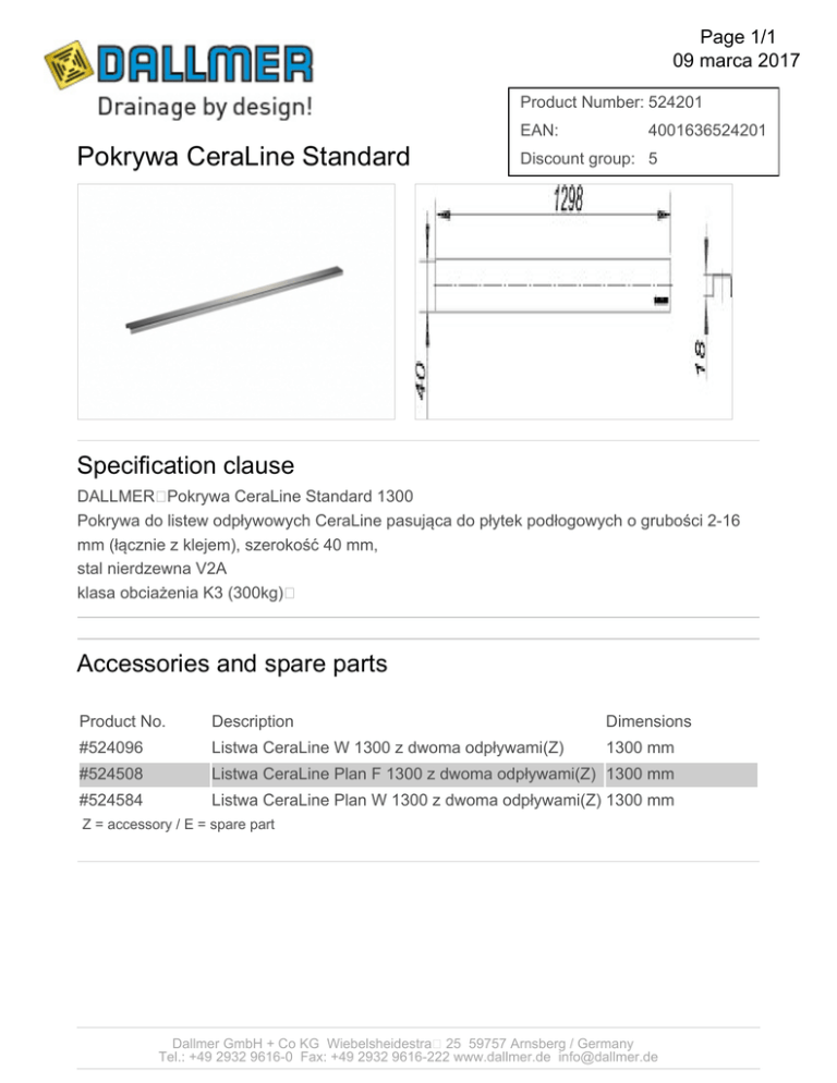 Pokrywa CeraLine Standard 1300