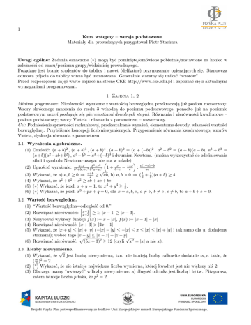 Cel: Podniesienie sprawności rachunkowej, przeksztalcanie wyrażeń, elementarne dowody, wlasności wartości