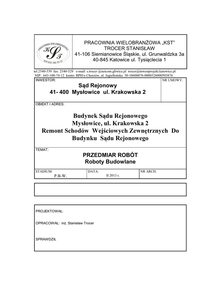 Budynek Sądu Rejonowego Mysłowice, ul. Krakowska 2 Remont
