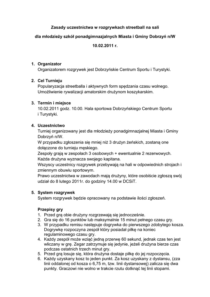 Zasady uczestnictwa w rozgrywkach streetball 2011-02-10