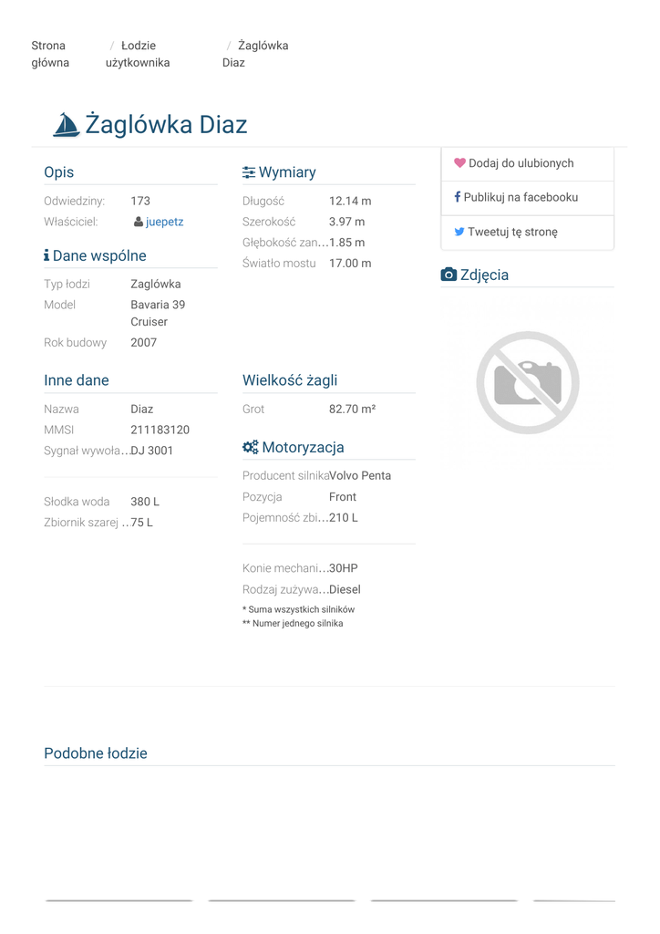 Łódź użytkownika: Żaglówka Diaz | Portmaps.com