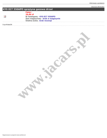Informacje o produkcie Utworzono 09-03-2017 6Y0 827 550APO sprężyna gazowa drzwi Cena : 16,84 zł Nr katalogowy : 6Y0 827 550APO Stan magazynowy : brak w magazynie Średnia ocena : brak recenzji w w w .ja ca rs .p l 5-tychFabiaCN Wygenerowano w programie www.oscGold.com