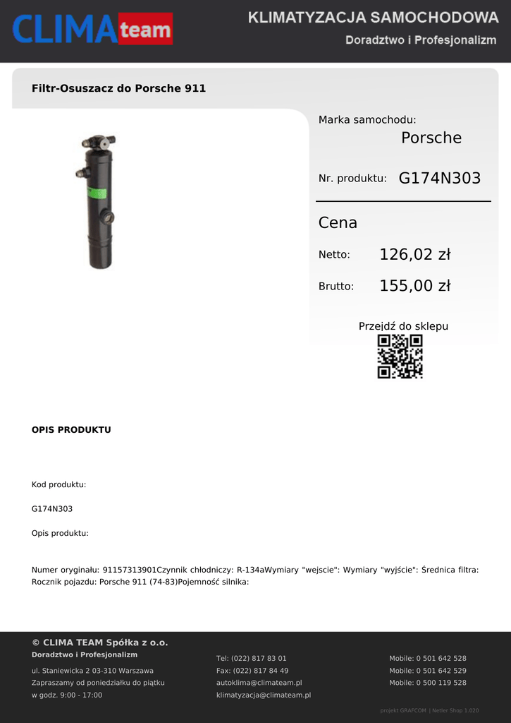 ClimaTeam Filtr-Osuszacz do Porsche 911