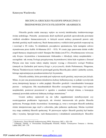 Recepcję greckiej myśli społecznej u średniowiecznych filozofów
