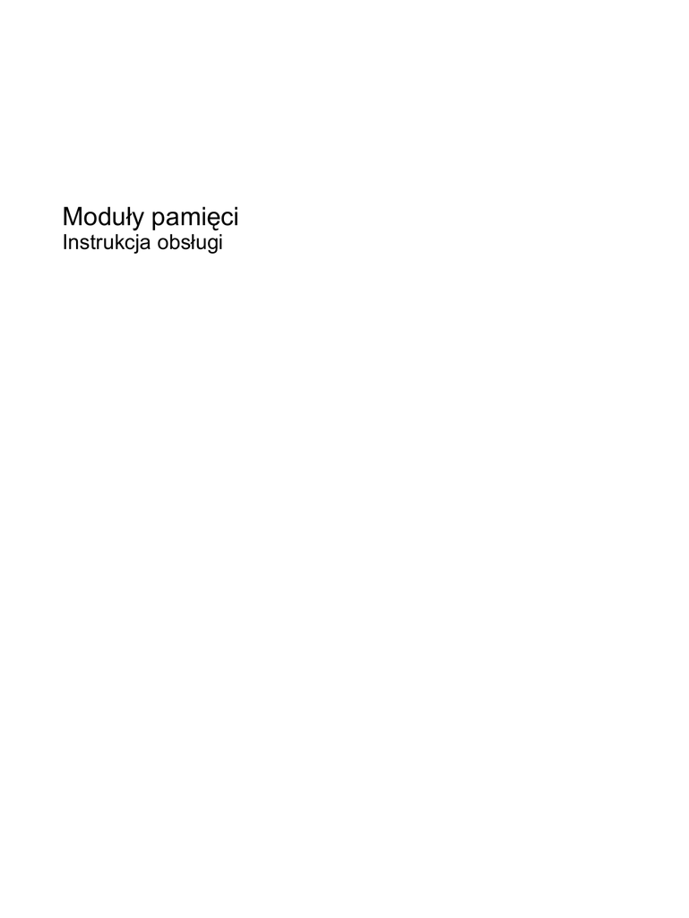 Moduły pamięci Instrukcja obsługi © Copyright 2007 Hewlett-Packard Development Company, L.P. Informacje zawarte w niniejszym dokumencie mogą zostać zmienione bez powiadomienia. Jedyne warunki gwarancji na produkty i usługi firmy HP są ujęte w odpowiednich informacjach o gwarancji towarzyszących tym produktom i usługom. Żadne z podanych tu informacji nie powinny być uznawane za jakiekolwiek gwarancje dodatkowe. Firma HP nie ponosi odpowiedzialności za błędy techniczne lub wydawnicze ani pominięcia, jakie mogą wystąpić w tekście. Wydanie pierwsze: Grudzień 2007 Numer katalogowy dokumentu: 460111-241 Uwagi o produkcie Niniejszy podręcznik opisuje funkcje występujące w większości modeli. Jednak niektóre funkcje mogą nie być dostępne w danym komputerze. iii iv Uwagi o produkcie Spis treści Dodawanie i wymiana modułu pamięci Indeks ................................................................................................................................................................... 5 v vi Dodawanie i wymiana modułu pamięci Komputer ma jedną komorę modułu pamięci, znajduje się ona w dolnej części komputera. Pojemność pamięci komputera można zwiększyć, dodając moduł pamięci do wolnego gniazda dodatkowego lub wymieniając istniejący moduł pamięci na moduł o wyższej pojemności. OSTRZEŻENIE! Aby zmniejszyć ryzyko porażenia prądem i uszkodzenia urządzenia, przed zainstalowaniem modułu pamięci należy odłączyć kabel zasilający i wyjąć wszystkie baterie. OSTROŻNIE: Wyładowania elektrostatyczne mogą doprowadzić do uszkodzenia podzespołów elektronicznych. Przed przystąpieniem do wykonywania jakiejkolwiek procedury należy odprowadzić ładunki elektrostatyczne, dotykając uziemionego, metalowego przedmiotu. UWAGA: Aby skorzystać z konfiguracji dwukanałowej podczas dodawania drugiego modułu pamięci, upewnij się że oba moduły są tej samej pojemności. Aby dodać lub wymienić moduł pamięci: 1. Zapisz swoją pracę. 2. Wyłącz komputer i zamknij pokrywę z wyświetlaczem. W przypadku wątpliwości, czy komputer jest wyłączony, czy też znajduje się w stanie hibernacji, należy go włączyć, naciskając przycisk zasilania. Następnie należy wyłączyć komputer za pomocą odpowiedniej funkcji systemu operacyjnego. 3. Odłącz wszystkie urządzenia zewnętrzne podłączone do komputera. 4. Odłącz kabel zasilający z gniazda sieci elektrycznej. 5. Połóż komputer spodem do góry na płaskiej powierzchni. 6. Wyjmij baterię. 7. Poluzuj 2 śruby komory modułu pamięci (1). 1 8. Podnieś pokrywę komory modułu pamięci i zdejmij ją z komputera (2). 9. Jeśli wymieniasz moduł pamięci, wyjmij istniejący moduł pamięci: a. Odciągnij zaciski mocujące (1) znajdujące się po obu stronach modułu pamięci. Moduł pamięci zostanie otwarty. b. Chwyć brzeg modułu pamięci (2) i delikatnie wyjmij moduł z gniazda. OSTROŻNIE: Aby nie uszkodzić modułu pamięci, należy trzymać go za krawędzie. Nie należy dotykać elementów modułu pamięci. Aby chronić moduł pamięci po wyjęciu z gniazda, należy go umieścić w pojemniku wolnym od wyładowań elektrostatycznych. 10. Włóż nowy moduł pamięci: 2 Dodawanie i wymiana modułu pamięci OSTROŻNIE: Aby nie uszkodzić modułu pamięci, należy trzymać go za krawędzie. Nie należy dotykać elementów modułu pamięci. a. Wyrównaj karbowaną krawędź modułu pamięci (1) z wypustką w gnieździe. b. Trzymając moduł przechylony pod kątem 45 stopni do powierzchni komory pamięci, wsuń go do gniazda, aż zostanie prawidłowo osadzony (2). c. Delikatnie dociśnij moduł pamięci (3), dociskając jednocześnie jego lewy i prawy brzeg, aż zaciski zaskoczą na swoje miejsce. OSTROŻNIE: Aby uniknąć uszkodzenia modułu pamięci, upewnij się że nie wyginasz modułu pamięci. 11. Dopasuj wypustki na pokrywie komory modułu pamięci (1) do otworów w komputerze. 12. Zamknij pokrywę (2). 13. Przykręć 2 śruby komory modułu pamięci (3). 14. Wymień baterię. 3 15. Podłącz zasilanie zewnętrzne oraz urządzenia zewnętrzne. 16. Włącz komputer. 4 Dodawanie i wymiana modułu pamięci Indeks M moduł pamięci dodawanie 1 rozszerzanie 1 wkładanie 2 wyjmowanie 2 wymiana 1 P pamięć dodawanie modułów pamięci 1 rozszerzanie modułów pamięci 1 wymiana modułów pamięci 1 pokrywa komory modułu pamięci wyjmowanie 2 wymiana 3 Indeks 5