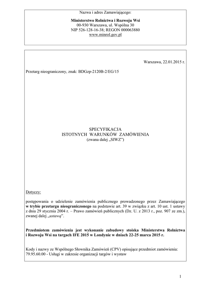 SIWZ - BIP Ministerstwo Rolnictwa i Rozwoju Wsi