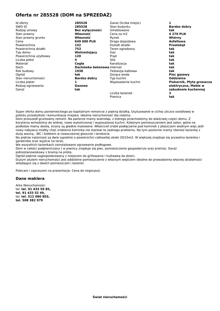 Oferta nr 285528 (DOM na SPRZEDAŻ)