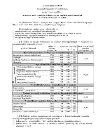 Zarządzenie Nr 40/14 Rektora Politechniki Świętokrzyskiej z dnia 18