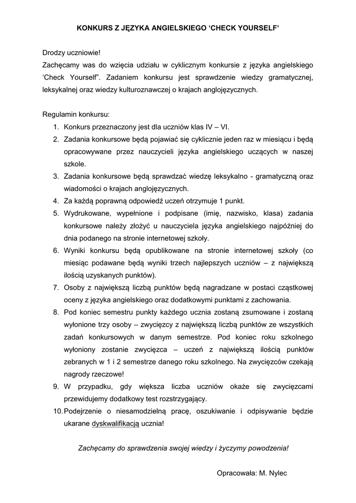 KONKURS Z JĘZYKA ANGIELSKIEGO `CHECK YOURSELF`
