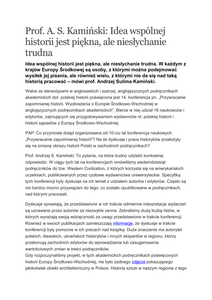 Prof. A. S. Kamiński: Idea wspólnej historii jest piękna, ale