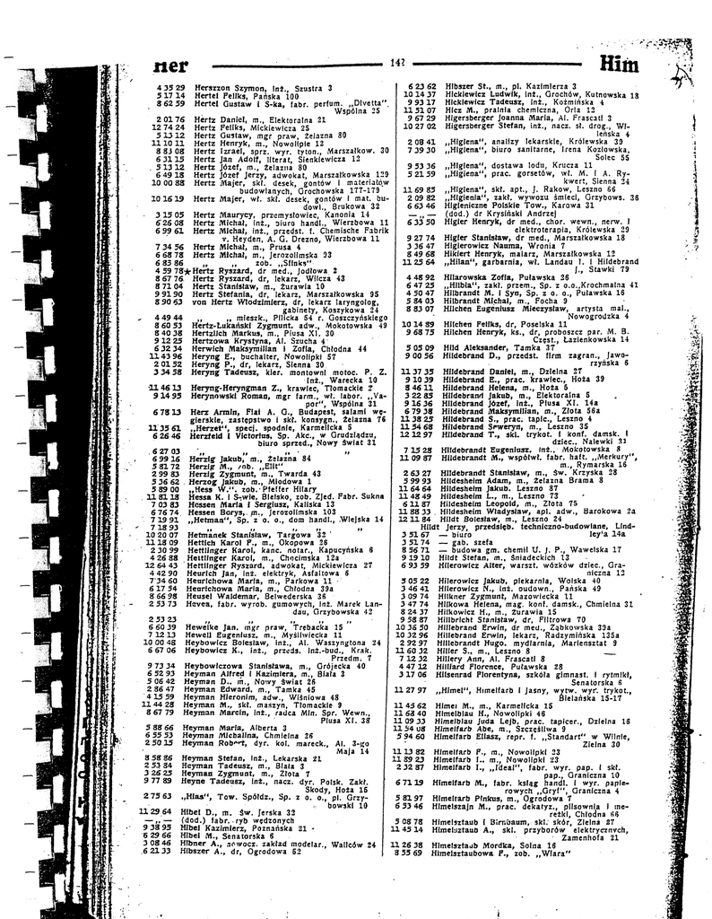 6" 26 08 Hertz Michał, inż., Diuro handl., Wierzbowa 11 j 6 33 50 HIgier Henryk, dr med., chor. wewn., nerw. i