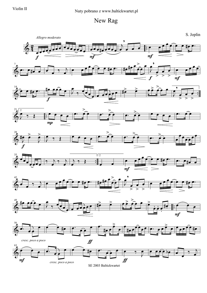 Violin II Nuty pobrano z www.baltickwartet.pl New Rag , j 2 & 4 œ œ œ œ œ œ œ œ œ œ œ œ œ œ œ œ œ #œ œ œ œ œ œ œ œ œ œ F f 7 œ >œ œ œ # œ œ œ œ œ œ . # œ # œ j & œ. œ #œ œ œ œ ‰ œ œ œ Allegro moderato >œ œ œ # œ œ . # œ œ œ œ œ œJ ‰ œ œ # œ œ œ œ œ & œ œ œ f 14 œ &J ‰ Œ 21 2 >œ # œ & J f 28 35 & œœœ > œ œ œœ . œ .. œ œ P >œ œ J J ‰ Œ & œ œ ‰ œj œ œ œ œ œ œ. œ œ > œ œ œ œ œ. œ œ > œ. œ œ œ . >œ œ .. œ œ œ F , > œ œ œ œ œ œ œ œ œ #œ œ. #œ #œ œ œ J œ > 2 # œ œ œ œ œ œJ œ œ >œ # œ ‰ œ œ œ œ & œ œ œ œ œ & œ. œ œ &œ F >œ œ œ œ œœœœ œ œ œ œ œ œ #œ œ. œ. œ #œ œ œ œ œ > > œ œ œ œ œ œ #œ œ. œ >œ >œ œ œ >œ . . # œ . œ œ œ œ. . . F œ œ œ # œ œ . œ œ œ œ . # œ œ >œ œ œ # œ œ œ œ œ œ œ . œ œ >œ œ œ œ œ œ œ # œ cresc. poco a poco 63 œ œœœœ F , œ J œ œ œ .. > > > œ . >œ œ 49 56 œ œ #œ œ. > œ. œ œ j j j œœœœ ‰ œ ‰ œ œ ‰ Œ 42 >œ .. œ œ œ œ œ F œ œ, J œ œ œ f > > > œ >œ >œ œ œ S. Joplin œ œ œ. œ œ œ œ cresc. poco a poco ƒ œ #œ œ. œœ œ œ ƒ SE 2003 Baltickwartet ‰ œJ œ œ œ œ b œ œ ‰ œj œ & œ œ. œ. œ. # œ. .. œj ‰ Œ ƒ 70 76 & 2 # n œ œ > œ. >œ >œ .œ # œ # œ J J #œ œ œ n œ œ # >œ œ œ # >œ œ # œ œ ‰ & œ J œ œ # >œ œœœ > n 82 œ œ # >œ F # >œ œ J # >œ # >œ J J ‰ Œ œ œ œ œ #œ œ œ œ #œ #œ œ œ œ œ œ œ œ > n œ œ # >œ j ‰ œ > œ , n œ œ œ œ œ œ œ #œ œ. j œ #œ nœ œ œ bœ œ bœ œ & œ nœ œ bœ œ œ #œ nœ œ œœœ œœ œ œ œ > > > F 88 # j & œ. œ #œ œ œ œ ‰ œ œ 94 œ œ #œ œ. & 101 œ &J ƒ 107 # Coda ‰ Œ > œ œ, œ œ # œ œ œ œ œ œ #œ œ. #œ œ œ J œ œ œ œ œ œ œ œ > > > f F # œ œ œ œ œ œJ > ‰ œ œ œ œ œ œ œ œ œ #œ œ f >œ >œ J >œ J œ J ∑ -2- ‰ ‰ œ >œ >œ œ œ ‰ Œ
