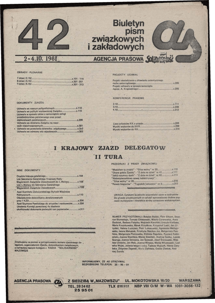 NUMER PRZYGOTOWALI: Bohdan Bielski, Piotr Bikont, Sewe