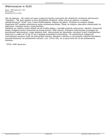 Włamywacze w ALDI - Jaworznicki Serwis Informacyjny