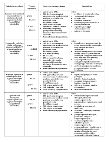 Szkolenia zawodowe Termin rozpoczęcia Szczegóły dotyczące