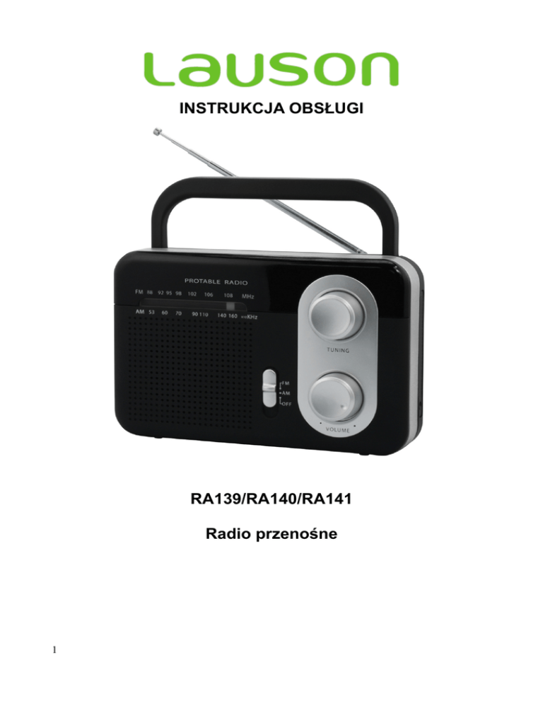 INSTRUKCJA OBSŁUGI RA139/RA140/RA141 Radio przenośne