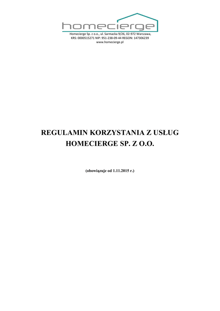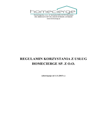REGULAMIN KORZYSTANIA Z USŁUG HOMECIERGE SP. Z O.O.