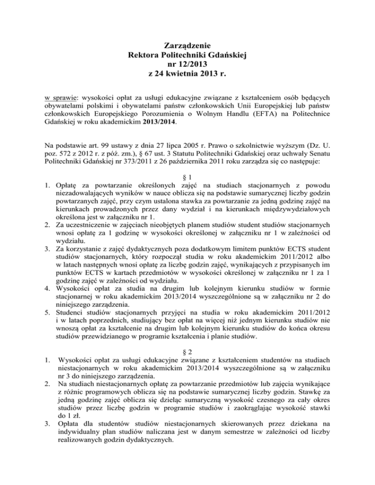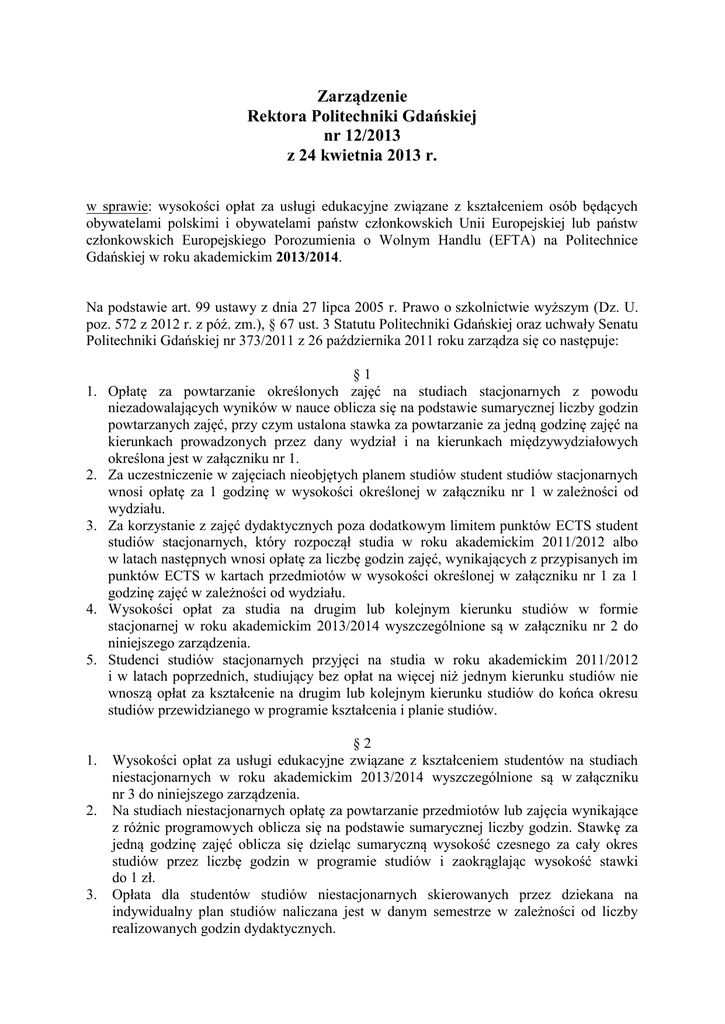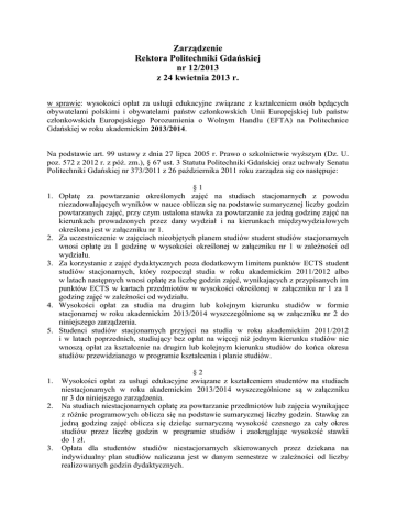 Zarządzenie Rektora Politechniki Gdańskiej nr 12/2013 z 24