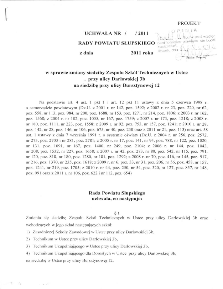 w spfawiezmianysiedzibyZespoluSzkó|Technicznychw Ustce