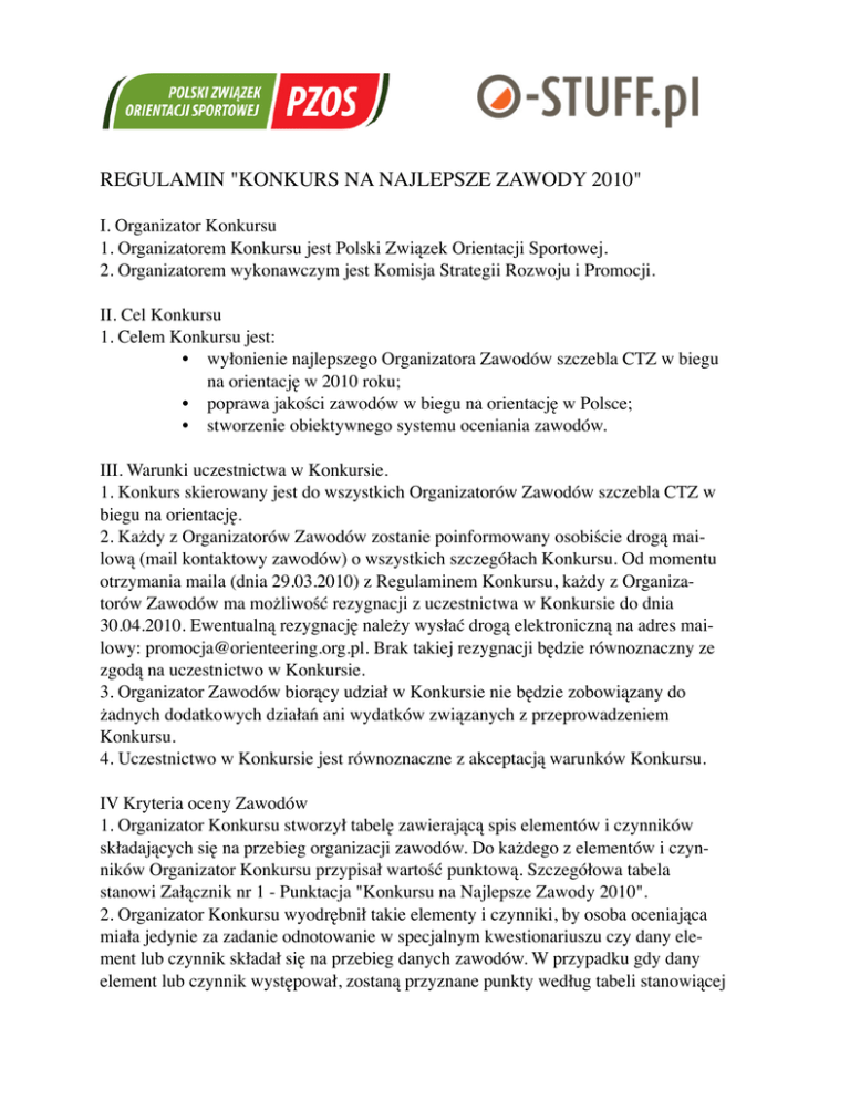 Regulamin konkursu - Polski Związek Orientacji Sportowej
