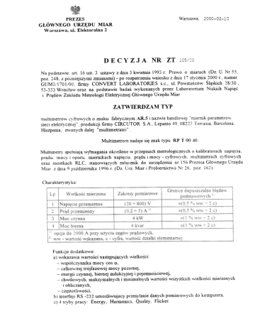 sieci elek'trycznej", produkcji firmy CIRCUTOR S.A., Lepanto 49. 08223 Terrassa.Barcelona,