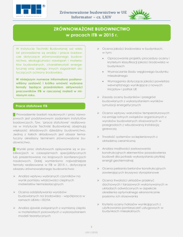ZRÓWNOWAŻONE BUDOWNICTWO w pracach ITB w 2015 r.