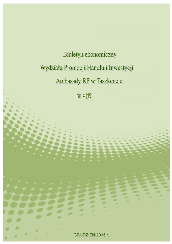 1 Spis treści Sytuacja społeczno-gospodarcza Uzbekistanu w okresie styczeń – wrzesień 2015 roku str. 4 Sytuacja społeczno-gospodarcza Tadżykistanu w okresie styczeń - wrzesień 2015 roku str. 9 III. Informacje bieżące str. 13 Wzrost cen alkoholu w Uzbekistanie Polsko-uzbekistański projekt inwestycyjny na terytorium Taszkenckiego Zakładu Farb i Lakierów (TLZ) Przyjęcie przez Parlament RU Ustawy „O Kodeksie Celnym RU” Nowe miejsca pracy w Uzbekistanie Budżet RU na 2016 rok Rezultaty Forum Inwestycyjnego w Taszkencie Monitorowanie działalności organów rządowych w Uzbekistanie Uzbekinvest w ratingu Moody’s Ukraińskie cło na samochody „made in Uzbekistan” Ustawa RU „O lekach i działalności farmaceutycznej” Ustawa RU „O weterynarii” Nowe miejsca pracy w Uzbekistanie w 2016 r. IV. Plan targów na 2016 rok Uzbekistan Tadżykistan I. II. str. 16 2 Szanowni Państwo, Z okazji Świąt Bożego Narodzenia i nadchodzącego Nowego Roku przyjmijcie Państwo nasze najserdeczniejsze życzenia zdrowia, szczęścia, radości, wielu sukcesów oraz wszelkiej pomyślności osobistej. Jacek Michalski wraz z Zespołem WPHI w Taszkencie Taszkent, grudzień 2015 roku 3 I. Sytuacja społeczno-gospodarcza Uzbekistanu w okresie styczeń – wrzesień 2015 roku 1. Produkt Krajowy Brutto Wg wstępnych danych Państwowego Komitetu ds. Statystyki RU, w okresie styczeń – wrzesień 2015 roku PKB osiągnął poziom 117.491,7 mld UZS i był o 8% wyższy niż w analogicznym okresie 2014 roku. 83% PKB wygenerował sektor niepaństwowy (2014 r. – 82,9%), a 17% – sektor państwowy. W strukturze PKB 50,6% stanowiły usługi (2014 r. – 50,1%), 38,6% – produkcja towarów (39%) oraz 10,8% – wpływy z podatków na towary i operacje eksportowo-importowe (10,9%). W przekroju terytorialnym największy wzrost PKB odnotowano w obwodzie Chorezmskim 111,4% (109,4% per capita), Surchardarińskim 110,8% (108,4% per capita), Samarkandzkim 110,4% (108,2% per capita), Namangańskim 109,2% (107,1% per capita) i Dżizakskim 108,9 (106,8% per capita), najmniejszy – w obwodzie Andiżańskim 102,8% (100,9% per capita). 2. Budżet Państwa Wg informacji z posiedzenia Rady Ministrów RU, dotyczącego wyników rozwoju społecznogospodarczego Uzbekistanu w okresie styczeń – wrzesień 2015 roku i priorytetów programu gospodarczego na 2015 rok (miało miejsce 27 listopada 2015 r.) Budżet Uzbekistanu za 9 miesięcy 2015 r. został zrealizowany z proficytem 0,1% PKB (117,5 mld UZS). Dochodowa część budżetu była większa o 0,2% od zakładanej i wyniosła 22,4% PKP (26.338,4 mld UZS), wydatki z budżetu wyniosły 22,3% PKB (98,4% zakładanych wydatków czyli 26.248,6 mld UZS). Wpływy do budżetu z podatków wyniosły 19.523,9 mld UZS, w tym z podatków bezpośrednich – 6.388,2 mld UZS (wzrost o 18,7% w porównaniu z 2014 r.). 3. Zadłużenie zagraniczne Oficjalnie dane dotyczące zadłużenia zagranicznego nie zostały opublikowane. 4. Inflacja Oficjalnie dane dotyczące inflacji zostały opublikowane tylko częściowo. Wg majowej prognozy Europejskiego Banku Odbudowy i Rozwoju inflacja w Uzbekistanie w 2015 r. miała wynieść 9,8%. Wg oficjalnych danych wzrost cen artykułów konsumpcyjnych na koniec września wyniósł w porównaniu z grudniem 2014 roku 2,2% (w 2014 r. – 3,0%). Średni miesięczny wzrost cen artykułów konsumpcyjnych wynosił 0,2% (w I-IX 2014 r. – 0,3%). Ceny producentów produkcji przemysłowej wzrosły o 7% (w 2014 r. – 10,2%). Na wzrost cen producentów produkcji przemysłowej największy wpływ miał wzrost cen materiałów budowlanych (dynamika 126,9%), wzrost w metalurgii żelaza (114,1%), w przemyśle chemicznym i petrochemicznym (109,8%), w przemyśle paliwowym (108,2%), w elektroenergetyce (107,3%), w przemyśle maszynowym i obróbki metali (105,2%), w przemyśle spożywczym (104,3%), w przemyśle lekkim (103,4%), w przemyśle drzewnym i celulozowo-papierniczym (102,5%). Nie uległy zmianie ceny w przemyśle młynarskim (100%), a uległy zmniejszeniu ceny w metalurgii metali kolorowych (dynamika 94,3%). W informatorze statystycznym za I – IX 2015 r. nie został uwzględniony wzrost cen usług dla osób fizycznych i prawnych. 4 5. Bezrobocie, zatrudnienie i dochody ludności Wg danych statystycznych, liczba ludności Uzbekistanu na dzień 1 października 2015 r. wynosiła 31.421,3 tys. osób (wzrost o 1,3%). a/ Liczba osób zarejestrowanych w urzędach zatrudnienia jako osoby poszukujące pracy wynosiła na koniec września 2015 r. 3 tys. (na koniec września 2014 – 4,7 tys. osób; 2013 r. - 12 tys. osób). W okresie styczeń-wrzesień 2015 r. liczba osób poszukujących pracy (liczona zgodnie z Rozporządzeniem Rady Ministrów RU nr. 106 z dn. 24.05.2007 r.) osiągnęła 698,3 tys. osób, czyli 5,1% ludności aktywnej zawodowo (13.750,8 tys. osób). Sytuację na rynku pracy Uzbekistanu charakteryzują również procesy migracyjne. Wg wstępnych danych, w okresie sprawozdawczym do Uzbekistanu przybyło 104,1 tys. osób, a wyemigrowało – 127,8 tys. osób. b/ Liczba osób zatrudnionych w gospodarce Uzbekistanu w okresie I-IX 2015 r. wynosiła wg. wstępnych danych 13.052,5 tys. i wzrosła w porównaniu z 2014 r. o 1,9%. 81,7% zatrudnionych pracowało w sektorach innych niż państwowy. Wg informacji Urzędu Analizy i Regulacji Rynku Pracy, w okresie styczeń-wrzesień 2015 roku powstało 748,67 tys. nowych miejsc pracy, z czego 60,3% powstało na terenach wiejskich; najwięcej miejsc pracy utworzono w obwodzie Fergańskim (73,68 tys. miejsc pracy), Samarkandzkim (72,65 tys.) i Taszkenckim (70,55 tys.). Ponad 60,5 tys. nowych miejsc pracy powstało w przemyśle, 51,7 tys. – w sektorze usług oraz 35 tys. – w rolnictwie. c/ Informacje nt. dochodów ludności w 2015 r. nie zostały opublikowane. Zgodnie ze zmianami z dn. 26.08.2015 roku, od 1 września br. minimalna pensja w Uzbekistanie wynosiła 130.240 UZS (50,2 USD wg. oficjalnego kursu Banku Cen