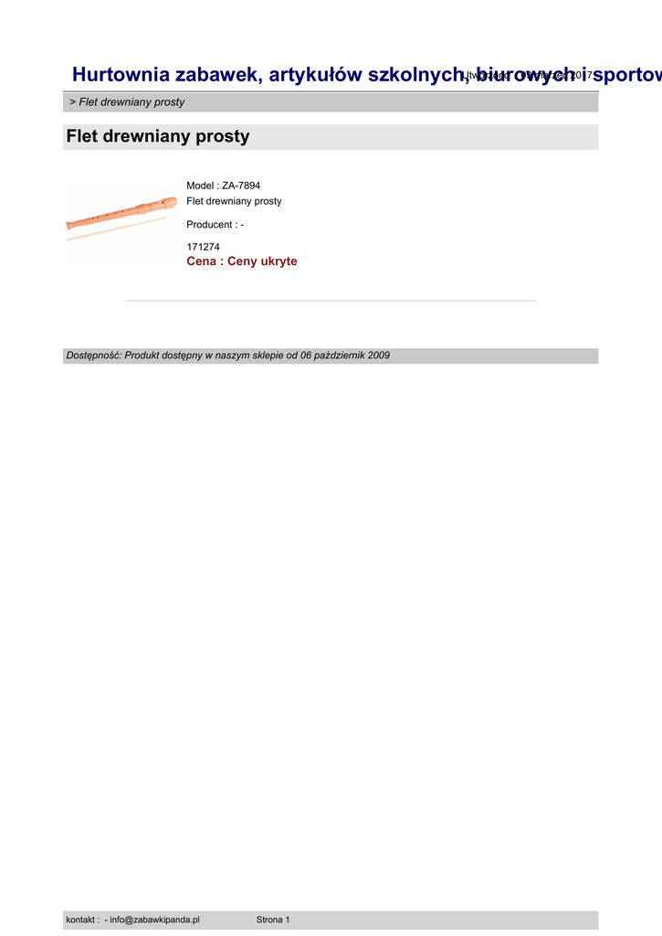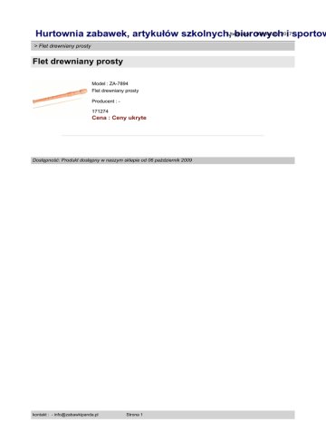 : 09 marzec 2017 Hurtownia zabawek, artykułów szkolnych,Utworzono biurowych i sportow > Flet drewniany prosty Flet drewniany prosty Model : ZA-7894 Flet drewniany prosty Producent : 171274 Cena : Ceny ukryte Dostępność: Produkt dostępny w naszym sklepie od 06 październik 2009 kontakt : - [email protected] Strona 1