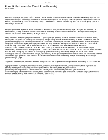 zmieniono, miał on treść: „PARTYZANTOM ZIEMI PRZEDBORSKIEJ A.K. PONTYFIKAT JANA PAWŁA