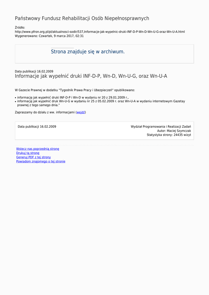 Strona znajduje się w archiwum. Informacje jak wypełnić druki INF