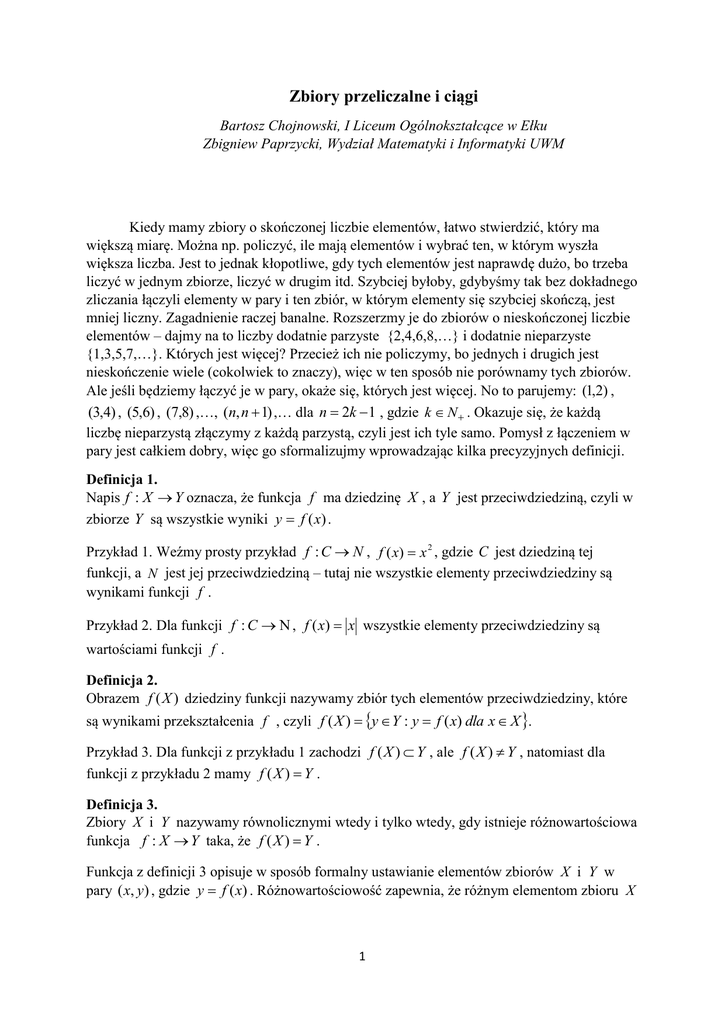 Zbiory przeliczalne i ciągi