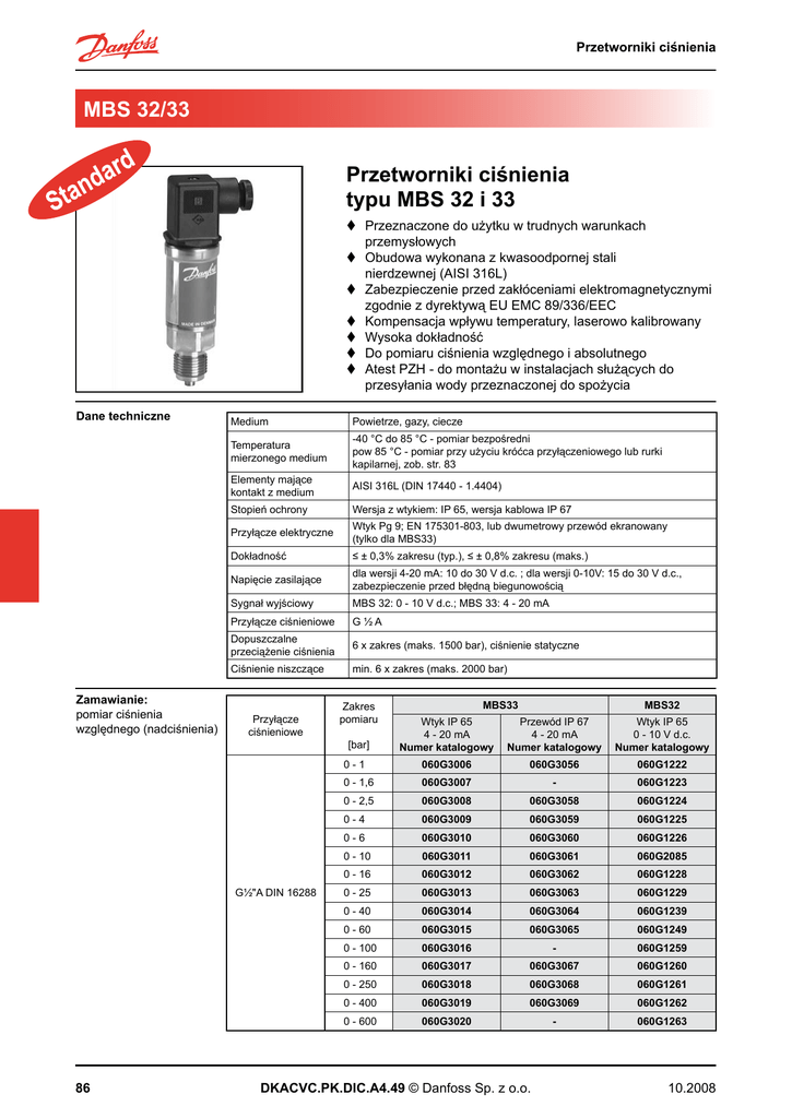 Przetworniki ciśnienia typu MBS 32 i 33 MBS 32/33