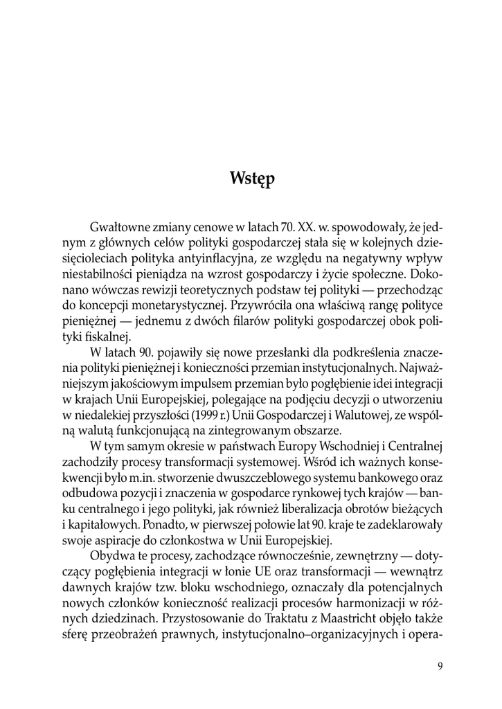 Ochrona konsumenta w świetle ustawy o szczególnych warunkach sprzedaży Wstęp Gwałtowne zmiany cenowe w latach 70. XX. w. spowodowały, że jednym z głównych celów polityki gospodarczej stała się w kolejnych dziesięcioleciach polityka antyinflacyjna, ze względu na negatywny wpływ niestabilności pieniądza na wzrost gospodarczy i życie społeczne. Dokonano wówczas rewizji teoretycznych podstaw tej polityki — przechodząc do koncepcji monetarystycznej. Przywróciła ona właściwą rangę polityce pieniężnej — jednemu z dwóch filarów polityki gospodarczej obok polityki fiskalnej. W latach 90. pojawiły się nowe przesłanki dla podkreślenia znaczenia polityki pieniężnej i konieczności przemian instytucjonalnych. Najważniejszym jakościowym impulsem przemian było pogłębienie idei integracji w krajach Unii Europejskiej, polegające na podjęciu decyzji o utworzeniu w niedalekiej przyszłości (1999 r.) Unii Gospodarczej i Walutowej, ze wspólną walutą funkcjonującą na zintegrowanym obszarze. W tym samym okresie w państwach Europy Wschodniej i Centralnej zachodziły procesy transformacji systemowej. Wśród ich ważnych konsekwencji było m.in. stworzenie dwuszczeblowego systemu bankowego oraz odbudowa pozycji i znaczenia w gospodarce rynkowej tych krajów — banku centralnego i jego polityki, jak również liberalizacja obrotów bieżących i kapitałowych. Ponadto, w pierwszej połowie lat 90. kraje te zadeklarowały swoje aspiracje do członkostwa w Unii Europejskiej. Obydwa te procesy, zachodzące równocześnie, zewnętrzny — dotyczący pogłębienia integracji w łonie UE oraz transformacji — wewnątrz dawnych krajów tzw. bloku wschodniego, oznaczały dla potencjalnych nowych członków konieczność realizacji procesów harmonizacji w różnych dziedzinach. Przystosowanie do Traktatu z Maastricht objęło także sferę przeobrażeń prawnych, instytucjonalno–organizacyjnych i opera9 Wstęp cyjnych polityki pieniężnej. Wymagało to wielu zmian w zakresie celów, strategii i instrumentów polityki pieniężnej, dla nadania jej nowoczesnego kształtu. Książka jest monografią o polityce pieniężnej nowych państw, które od maja 2004 r. stały się członkami Unii Europejskiej. Osiem państw Europy Wschodniej i Centralnej, mimo niejednakowych rezultatów przemian, tworzy grupę wewnętrznie i historycznie jednorodną i spójną, zdecydowanie różniącą się od Malty i Cypru. W opracowaniu nie wzięto pod uwagę Bułgarii i Rumunii, które stały się członkami Unii Europejskiej w styczniu 2007 r. Natomiast horyzont czasowy analiz kończył się na 2005 r. Książka składa się z dwóch części. Pierwsza z nich, obejmująca trzy rozdziały, została poświęcona prezentacji uwarunkowań organizacyjnych, prawnych i gospodarczych polityki pieniężnej w nowych państwach członkowskich Unii Europejskiej z Europy Środkowej i Wschodniej. W rozdziale pierwszym przedstawiono analizę przemian systemów finansowych państw UE–8. Świadomość, że najpoważniejszą rolę w ukształtowaniu dzisiejszego wizerunku i stanu tych gospodarek odegrały procesy transformacji systemowej, skłoniła autorkę do przedstawienia ich wpływu na przekształcenia instytucjonalno–organizacyjne systemów finansowych. Ważnym aspektem tych przemian było także uwzględnienie faktu, że procesy te zostały zapoczątkowane niejednocześnie, z różną intensywnością i przy różnej skali problemów społecznych i ekonomicznych, w warunkach niesprzyjającej koniunktury gospodarczej w państwach Europy Wschodniej i Centralnej aspirujących wówczas do członkostwa w Unii Europejskiej. W syntetyczny sposób pokazano budowanie systemów finansowych, niejednokrotnie od podstaw, wymagające wielu uregulowań prawnych. Jednocześnie powstały nowe instytucje, jak np. fundusze inwestycyjne, a także fundusze emerytalne czy organy ochrony depozytów. Reaktywowano, nieistniejące w gospodarce centralnie planowanej, rynek kapitałowy i giełdy bądź też zmieniły się zasady funkcjonowania — jak w przypadku bankowości centralnej i sektora bankowego. W rozdziale drugim skupiono uwagę na przekształceniach instytucjonalno–prawnych bankowości centralnej państw UE–8, na tle zmian infrastruktury finansowej. Przedstawiono genezę bankowości centralnej oraz zadania i strukturę decyzyjną władzy monetarnej w przekroju narodowym. Ze względu na ewolucyjną drogę prześledzono też jak kształtowała się niezależność banków centralnych Europy Środkowej i Wschodniej, 10 Wstęp w kontekście członkostwa w Unii Europejskiej, jak dostosowywano się do wymagań Traktatu z Maastricht. Rozdział zamykają uwagi na temat rozbieżności, które nadal pozostały w zakresie niezależności państw UE–8, w stosunku do rozwiązań Eurosystemu. Rozdział trzeci został poświęcony sytuacji i polityce gospodarczej w państwach Europy Środkowej i Wschodniej, gdy aspirowały do członkostwa w Unii, a następnie — gdy stały się jej członkami, przygotowującymi się do wejścia do strefy wspólnej waluty. Analizą objęto lata 1990–2005. W niektórych przypadkach, np. późniejszego kreowania państwowości (w krajach nadbałtyckich), nie zachowano konsekwentnie tego horyzontu czasowego. Rozdział przedstawia kształtowanie się wskaźników makroekonomicznych analizowanych państw UE–8, takich jak: produkt krajowy brutto, deficyt publiczny, inflacja, bezrobocie, konsumpcja, inwestycje czy kształtowanie się kursu walutowego i stóp procentowych na tle różnorodnych zdarzeń politycznych i ważnych zjawisk gospodarczych. Druga część pracy, obejmująca trzy rozdziały, została poświęcona polityce monetarnej nowych państw członkowskich UE z Europy Środkowej i Wschodniej. Z uwagi na złożoność warunków gospodarowania i pogłębianie się tendencji integracyjnych tych krajów oraz inny kształt polityki monetarnej — odrębnie przeanalizowano ją w 