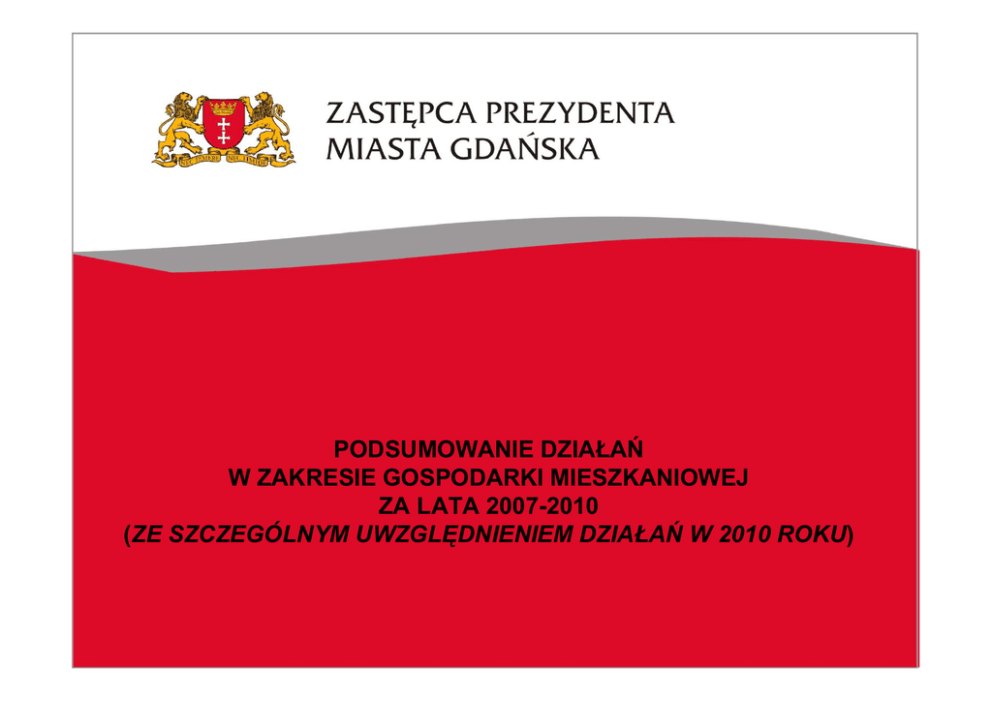 PODSUMOWANIE DZIAŁAŃ W ZAKRESIE GOSPODARKI MIESZKANIOWEJ ZA LATA 2007-2010 (ZE SZCZEGÓLNYM UWZGLĘDNIENIEM DZIAŁAŃ W 2010 ROKU) POZYSKIWANIE LOKALI MIESZKALNYCH Lokale nowe Lata Lokale z odzysku Zakup w tym lokale za grunt GIS TBS RAZEM 2010 323 84 2 87 496 2009 269 252 179 167 867 2008 292 153 152 232 829 2007 244 11 58 313 RAZEM 1 128 500 544 2 505 333 REALIZACJA I PLANY W 2010r łącznie pozyskano 496 lokali, w tym: • Zakup lokali przez Gdańską Infrastrukturę Społeczną • Zamiany nieruchomości na lokale mieszkalne („Lokale za grunt”) • Lokale pozyskane w ramach naturalnego ruchu ludności • Lokale wybudowane przez TBS - 2 lokale - 84 lokale - 323 lokale - 87 lokali. NajbliŜsze plany (na rok 2011) to pozyskanie 576 lokali: • Lokale wybudowane przez TBS - 125 lokali. • Zamiany nieruchomości na lokale mieszkalne („Lokale za grunt”) - 106 lokali • Lokale pozyskane w ramach naturalnego ruchu ludności - 315 lokali (w tym 68 lokali w budynkach na obszarze poddanym rewitalizacji - Letnica) • Lokale socjalne pozyskane w ramach modernizacji budynków - 30 lokali POZYSKIWANIE LOKALI SOCJALNYCH i POMIESZCZEŃ TYMCZASOWYCH Remonty lub modernizacja obiektów gminnych na pomieszczenia tymczasowe (w budynkach typu hotelowego) – łącznie 110 pomieszczeń tymczasowych W 2010r. oddano do uŜytkowania 54 pomieszczenia tymczasowe w jednym z budynków (w budynku tym wdroŜony zostanie we współpracy z organizacją pozarządową program – Centrum Treningu Umiejętności Społecznych, wspierający rodziny wyeksmitowane do pomieszczeń tymczasowych w celu przeciwdziałania wykluczeniu społecznemu tych rodzin) W I kw. 2011r – przygotowanych zostanie kolejnych 56 pomieszczeń tymczasowych w drugim z budynków. LOKALE SOCJALNE W ZASOBIE Łącznie w zasobie mieszkaniowym Miasta Gdańska na koniec 2010r wyodrębnionych zostało 619 lokali socjalnych dla rodzin pozostających w niedostatku, w tym 142 lokale – budynkach wspólnot mieszkaniowych. Liczba wyodrębnionych lokali socjalnych wzrosła o 108% w stosunku do liczby lokali socjalnych wyodrębnionych w zasobie mieszkaniowym wg stanu na koniec 2006r. LATA Ilość Powierzchnia wzrost (dynamika) 2010 619 20 164 208% 2009 523 16 915 176% 2008 447 14 119 151% 2007 403 12 605 136% 2006 297 9 578 100% LOKALE W BUDYNKACH DO ROZBIÓRKI (bez rozbiórek inwestycyjnych) LISTA 2006 2007 2008 2009 2010 788 622 539 407 237 w budynkach z nakazem PINB 268 193 118 85 91 nieopłacalność remontu 437 429 320 249 204 1 225 1 051 859 656 441 katastrofalny stan w tym: RAZEM BUDYNKI DO ROZBIÓRKI - TENDENCJA ZMIAN LATA 2006-2010 ILOŚĆ RODZIN OCZEKUJĄCYCH 800 700 600 500 2006 400 2007 300 2008 2009 200 2010 100 0 katastrofalny stan nieopłacalność remontu BUDYNKI DO ROZBIÓRKI ZAREJESTROWANE POTRZEBY MIESZKANIOWE ZAREJESTROWANE POTRZEBY 2006 2007 2008 2009 2010 1 440 1 204 875 571 lokale pozostałe 647 472 428 306 195 lokale socjalne 1 207 1 205 1 284 1 429 1 609 RAZEM 3 467 3 117 2 916 2 610 2 375 O C ZE K U JĄ C Y C H 1 613 ILO Ś ĆR O D ZIN lokale zamienne TENDENCJA ZM IAN ZAREJESTROWANYCH POTRZEB M IESZKANIOWYCH LATA 2006-2010 1 800 1 600 1 400 1 200 2006 1 000 2007 800 2008 600 400 2009 2010 200 0 lokale zamienne lokale pozostałe lokale socjalne TYP LOKALU ULGI UDZIELONE DŁUśNIKOM W SPŁACIE ZADŁUśENIA GZNK WGK RAZEM Wyszczególnienie ilość kwota ilość kwota ilość kwota rozłoŜenie na raty 382 1 422 710,23 107 1 097 102,09 489 2 519 812 umorzenie 146 554 140,40 38 636 957,59 184 1 191 098 odroczenie 46 315 281,24 112 2 303 772,61 158 2 619 054 RAZEM 574 2 292 131,87 257 4 037 832,29 831 6 329 964 POZYSKANIE ŚRODKÓW Z BUDśETU PAŃSTWA NA TWORZENIE LOKALI SOCJALNYCH • W 2010r Gmina Miasta Gdańska złoŜyła wniosek o udzielenie finansowego wsparcia na tworzenie lokali socjalnych, o którym mowa w Rozporządzeniu Ministra Infrastruktury z dnia 29 lipca 2009r. • Zgodnie z informacją Banku Gospodarstwa Krajowego o wynikach oceny punktowej wniosków złoŜonych w tym zakresie (Komunikat nr 2/2010z dnia 29.12.2010r) - wniosek Gminy Miasta Gdańska zakwalifikował się do uzyskania finansowego wsparcia z Funduszu Dopłat. Łącznie Gmina Miasta Gdańska uzyska dofinansowanie w kwocie 2 mln zł. • Podkreślić naleŜy, Ŝe spośród 53 gmin ubiegających się o dofinansowanie wniosek Miasta Gdańska, jako jeden z 39 wniosków, uzyskał pozytywną kwalifikację wymaganą do udzielenia dofinansowania. Mimo stosunkowo wysokiej kwoty dofinansowania, o którą ubiegał się Gdańsk, ocena punktowa złoŜonego wniosku była na tyle wysoka, Ŝe pozwoliła naszemu Miastu znaleźć się w grupie beneficjentów.