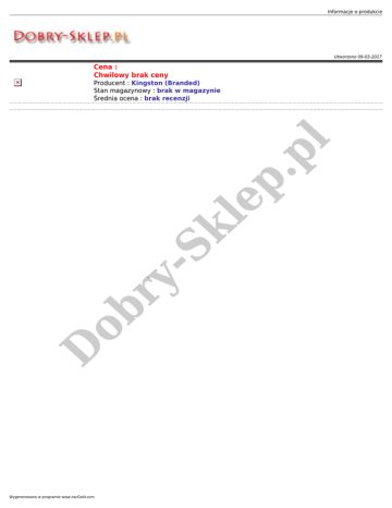 Informacje o produkcie Utworzono 09-03-2017 Cena : Chwilowy brak ceny D ob ry - Sk le p. pl Producent : Kingston (Branded) Stan magazynowy : brak w magazynie Średnia ocena : brak recenzji Wygenerowano w programie www.oscGold.com