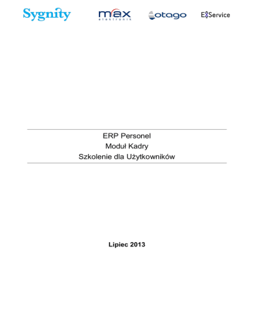 ERP Personel Moduł Kadry Szkolenie dla Użytkowników Lipiec 2013 Nazwa szkolenia Obsługa Systemu Zarządzania Wrocławską Oświatą w komponencie ERP – Personel, Moduł Kadry Cel Przekazanie informacji na temat efektywnego wykorzystania modułu Kadry do pracy Grupa docelowa Pracownicy Działu Kadr Wymagania wstępne Podstawowa znajomość obsługi komputera w systemie Windows (umiejętność posługiwania się klawiaturą i myszą) Obsługa przeglądarki internetowej Metody szkolenia Wykłady i ćwiczenia Umiejętności nabyte po szkoleniu Umiejętność poruszania się po module Kadry Umiejętność wykonywania w aplikacji czynności niezbędnych do obsługi kartoteki pracowników i współpracowników Czas szkolenia 2 dni szkoleniowe Zakres szkolenia Zestawienie szczegółowych zagadnień szkoleniowych z podanym czasem dla każdego zagadnienia Lp. Zagadnienie 1 Powitanie i zapoznanie Omówienie zagadnień 2 związanych z pracą w module Kadry Omówienie zagadnień 3 dotyczących Kartoteki pracowników Zagadnienia szczegółowe I dzień Powitanie uczestników Przedstawienie agendy szkolenia Wprowadzenie Lista obecności Uruchamianie aplikacji i logowanie użytkownika Ogólny wygląd programu Interfejs użytkownika Struktura Organizacyjna (Wykaz Placówek) Struktura Zatrudnienia (Wykaz stanowisk Pracy) Obsługa słowników Filtry / widoki w kartotece, pozycjonowanie Zatrudnienie pracownika administracji Zatrudnienie nauczyciela 4 Przerwa kawowa 5 Ćwiczenia Uczestnicy szkolenia realizują scenariusze szkoleniowe dotyczące omówionych zagadnień Czas trwania 30 min 30 min 10 min 10 min 20 min 10 min 55 min 2 Lp. Zagadnienie Omówienie zagadnień 6 dotyczących Kartoteki pracowników Zagadnienia szczegółowe Dane pracownika - omówienie podkartotek: - dane personalne - zmiana danych personalnych - dane urzędowe - dane ZUS - wykształcenie - informacje o rodzinie - adresy - historia pracy - rachunki bankowe - obciążenia komornicze i administracyjne - badania lekarskie 7 Przerwa kawowa Omówienie zagadnień 8 dotyczących Kartoteki pracowników c.d. 11 Podsumowanie I dnia szkolenia 12 Powitanie Omówienie zagadnień 13 dotyczących Kartoteki pracowników c.d. 14 Ćwiczenia Dane pracownika - omówienie podkartotek c.d.: - szkolenia i kwalifikacje - dyscyplina pracy - kontakty - dane dodatkowe - umowa o pracę - kary, nagrody, odznaczenia - załączniki multimedialne - klasyfikacja budżetowa (pracownik) Dokumenty zgłoszeniowe ZUS i generowanie deklaracji zgłoszeniowej Przeszeregowanie pracownika administracji Przeszeregowanie nauczyciela Uczestnicy szkolenia realizują scenariusze szkoleniowe dotyczące omówionych zagadnień Podsumowanie na podstawie agendy Podziękowanie za przybycie, podanie godziny rozpoczęcia szkolenia w dniu następnym II dzień Powitanie uczestników i przedstawienie agendy II dnia szkolenia. Anulowanie przeszeregowania Anulowanie zatrudnienia Zwolnienie pracownika i wyrejestrowanie z ZUS Anulowanie zwolnienia Uczestnicy szkolenia realizują scenariusze szkoleniowe dotyczące omówionych zagadnień 15 Przerwa kawowa Omówienie zagadnień 16 dotyczących Kartoteki współpracowników 1h 10 min 9 Przerwa kawowa 10 Ćwiczenia Czas trwania Filtry / widoki w kartotece, pozycjonowanie Zawarcie umowy ze współpracownikiem Dane współpracownika - omówienie podkartotek: - dane personalne - dane urzędowe - dane ZUS - informacje o rodzinie - rejestracja członka rodziny - adresy 1h 20 min 15 min 20 min 10 min 1 h 15 min 5 min 5 min 5 min 5 min 10 min 5 min 40 min 10 min 10 min 20 min 1h 3 Lp. Zagadnienie Zagadnienia szczegółowe Czas trwania - rachunki bankowe - obciążenia komornicze i administracyjne - dyscyplina pracy 17 Przerwa kawowa Omówienie zagadnień 18 dotyczących Kartoteki współpracowników c.d. 19 Ćwiczenia 10 min Dane pracownika - omówienie podkartotek c.d.: - kontakty - dane dodatkowe - dane umowy - harmonogram płatności - szkolenia i kwalifikacje - klasyfikacja budżetowa (współpracownik) Usunięcie umowy Uczestnicy szkolenia realizują scenariusze szkoleniowe dotyczące omówionych zagadnień 50 min 15 min 1 h 15 min 20 Przerwa kawowa 21 Raporty kadrowe 22 Podsumowanie procesów Raporty wbudowane i generator raportów Podsumowanie omówionych procesów 10 min 15 min 15 min 23 Test sprawdzający Uczestnicy szkolenia wykonują test końcowy 20 min 24 Wypełnianie ankiet Uczestnicy szkolenia wypełniają ankietę dotyczącą szkolenia 15 min Lista scenariuszy: Scenariusz 1: K01_Logowanie Scenariusz 2: K02_Dane_jednostki Scenariusz 3: K03_Zatrudnienie Scenariusz 4: K04_Zatrudnienie_nauczyciela Scenariusz 5: K05_Przypisanie_klasyfikacji Scenariusz 6: K06_Dodawanie_obciazen_wynagrodzenia Scenariusz 7: K07_Generowanie_zgloszen_ZUS Scenariusz 8: K08_Przeszeregowanie Scenariusz 9: K09_Przeszeregowanie_nauczyciela Scenariusz 10: K10_ Rejestracja_absencji Scenariusz 11: K11_Anulowanie_zatrudnienia Scenariusz 12: K12_ Anulowanie_przeszeregowania Scenariusz 13: K13_Zwolnienie_pracownika Scenariusz 14: K14_ Anulowanie_zwolnienia Scenariusz 15: K15_ Drukowanie_Rp_7 Scenariusz 16: K16_Zawarcie_umowy Scenariusz 17: K17_Zmiana_danych Scenariusz 18: K18_Dane_dodatkowe Scenariusz 19: K19_Rejestracja_czlonka_rodziny Scenariusz 20: K20_Usuniecie_umowy 4