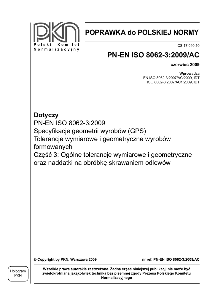 POPRAWKA do POLSKIEJ NORMY PN-EN ISO 8062-3